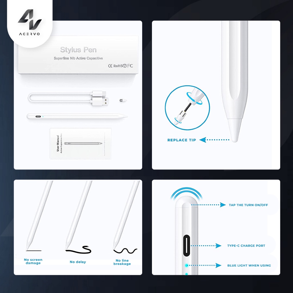 Acervo Universal Stylus Pen Magnetic Absorption Active Capacitive Pencil for Apple Android iPhone Samsung Xiaomi