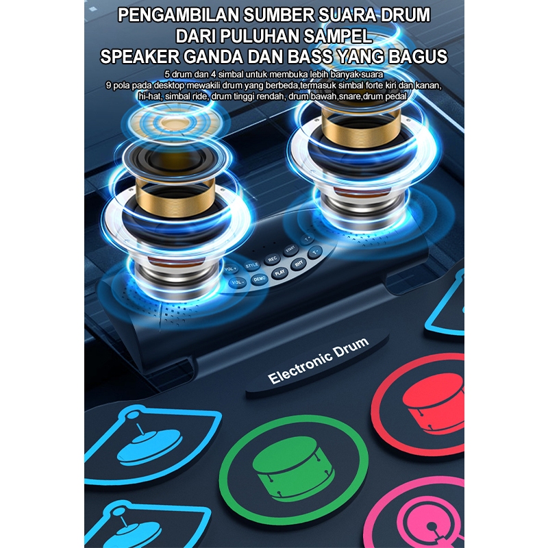 Set Drum Electric Set Drum Pemula Latihan Anak-anak Set Drum Koneksi Bluetooth 1686