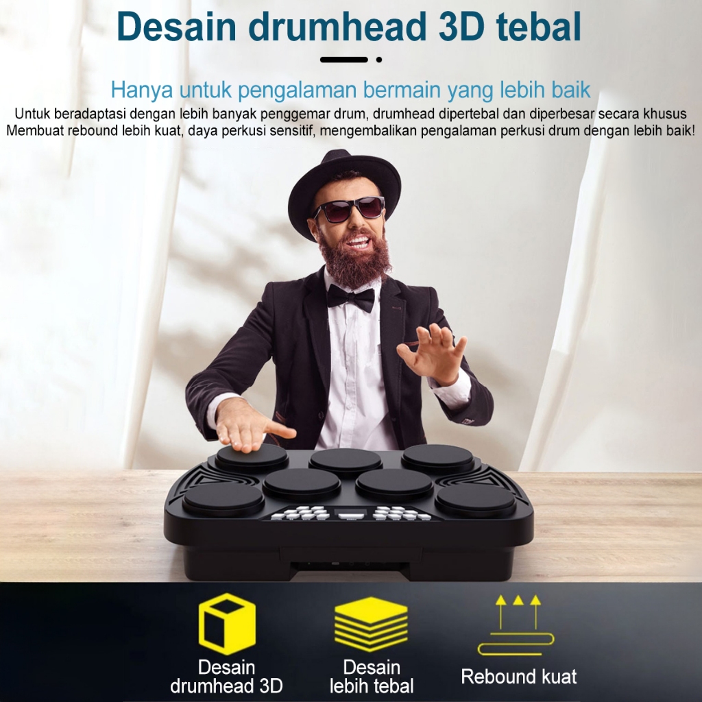 Digital Portabel Drum Roll Drum Elektronik Perkusi Elektronik Drum Kit Drum Jazz 7 Pad Drum dengan metronom built-in