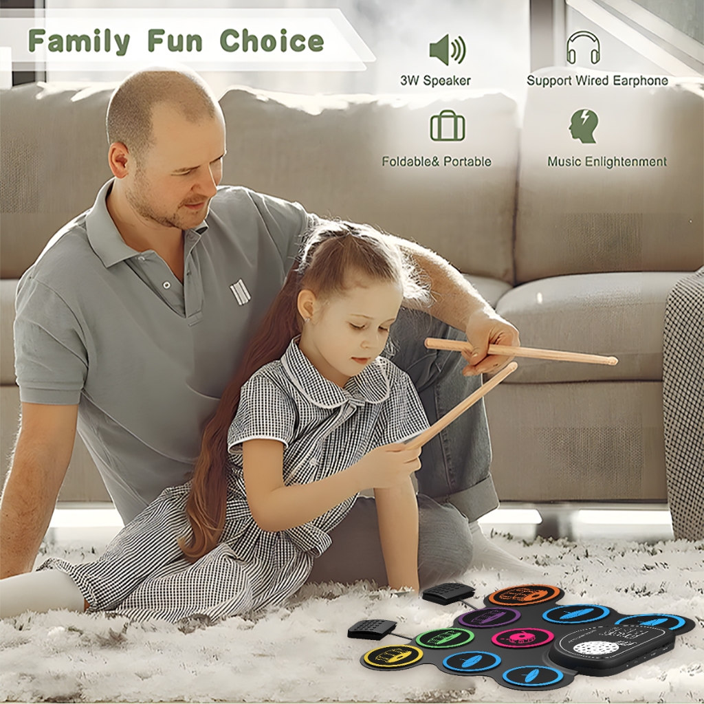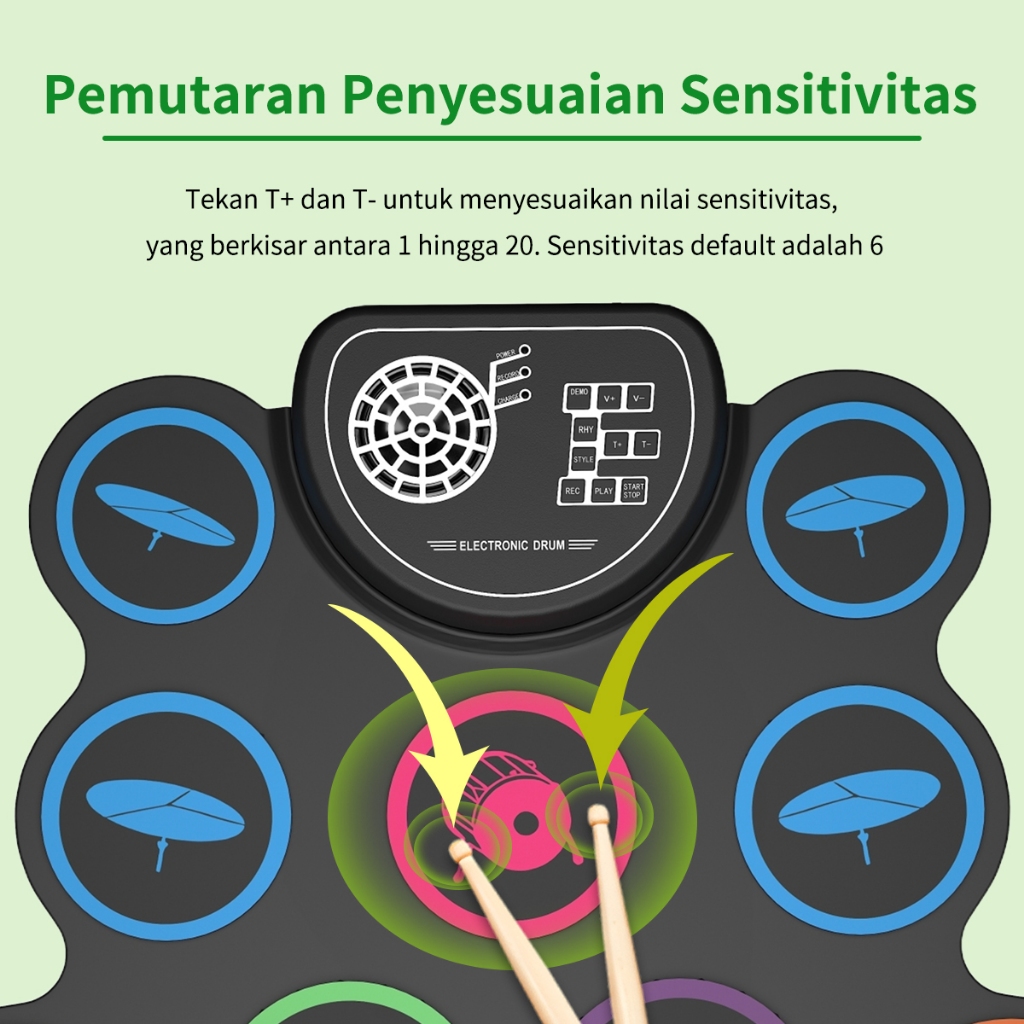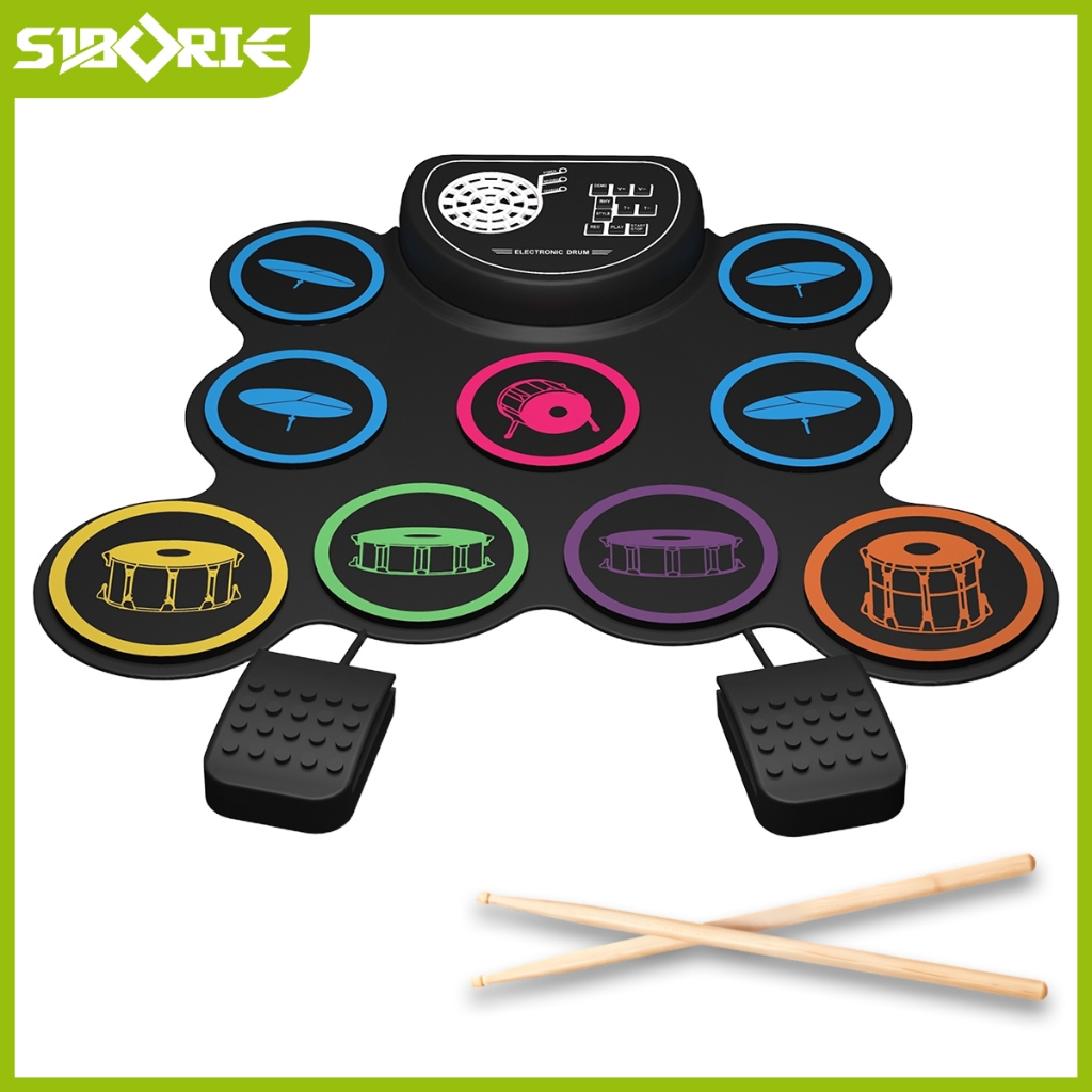 Siborie KD12 Electronic Drum Kit 9 Pads Drum Gulung Anak-anak Set Lipat Drum Elektrik Silikon Hand Roll Drum Kit Drum Ja
