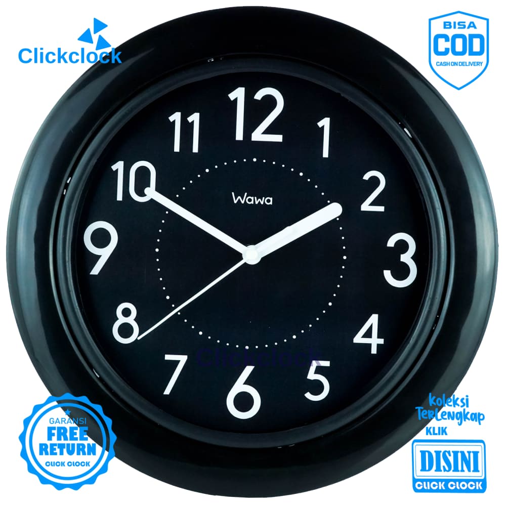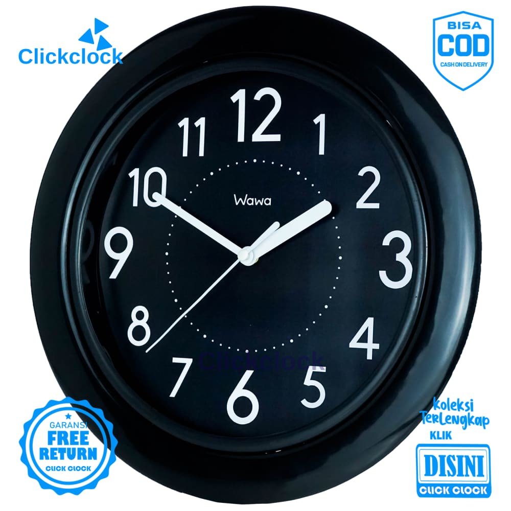 Jam Dinding Analog Minimalis Hitam Wawa WW1111 Besar Dekorasi Rumah Unik