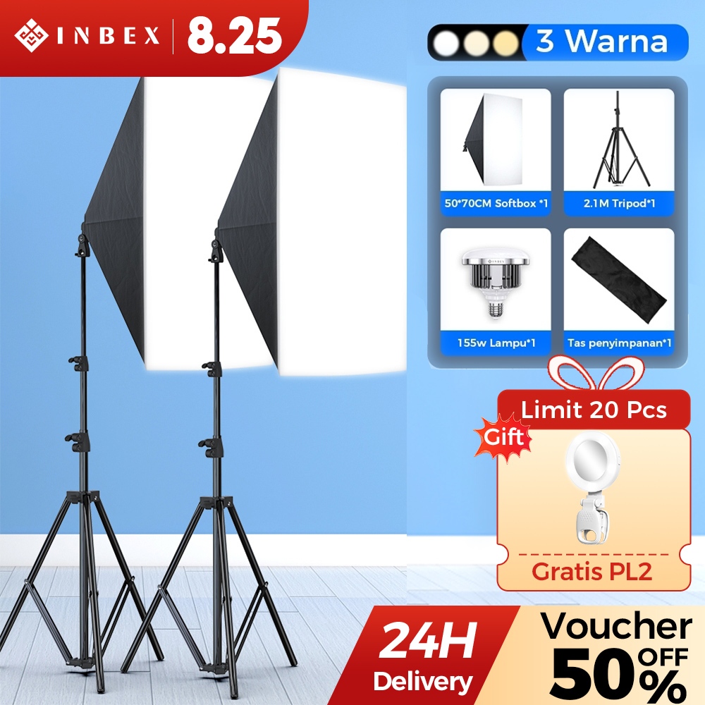 INBEX Softbox Lighting Konten Studio Live ILM2 6000K Lampu 3 Suhu Warna Background Foto Soft box