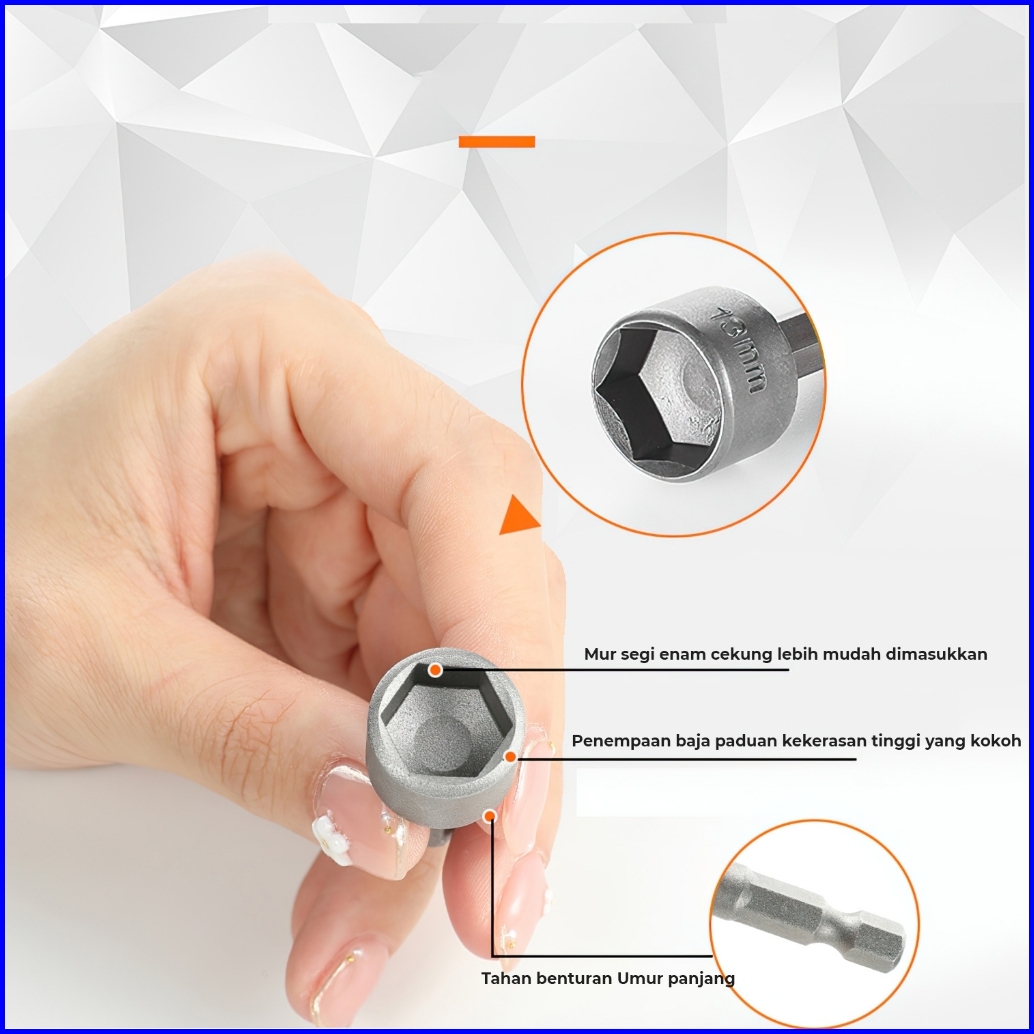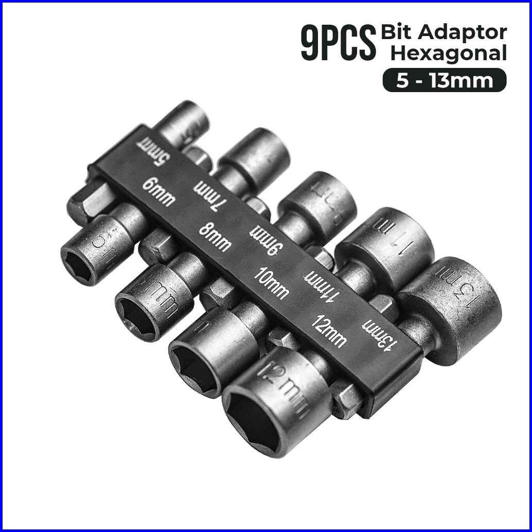 Allefix Bit Adaptor Hexagonal 5-13mm Mata Bor Hex Nut Driver Set 9pcs -6790