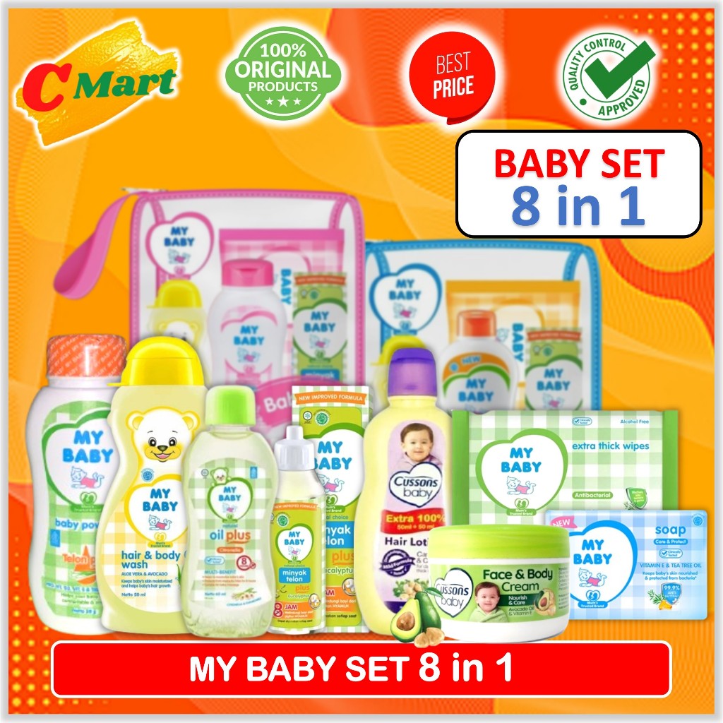 My Baby Gift Pack 8 In 1 | Baby Set Perlengkapan Bayi | Hair Lotion Wash | Powder | Telon | CMart