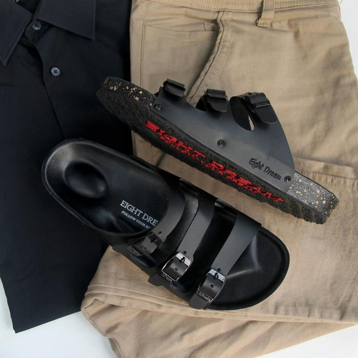 ED Eight Dream Sandal Casual Pria Wanita Kama Full Black Sendal Kasual