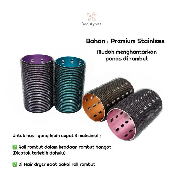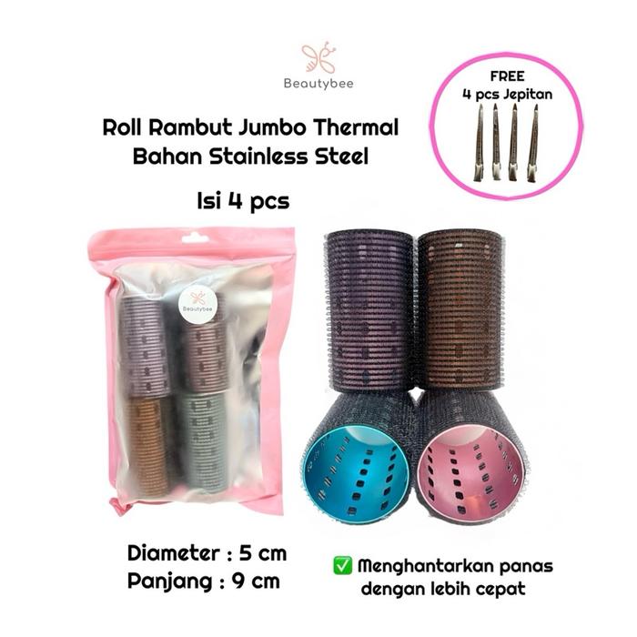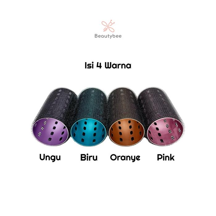 BEAUTYBEE Roll Rambut Velcro Jumbo Stainless Thermal Premium Isi 4 Colorful Free Jepit Bebek (R039)