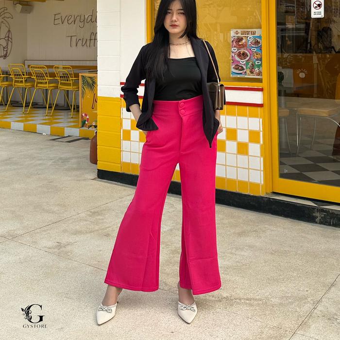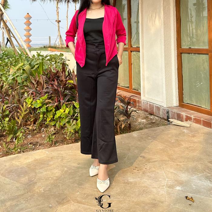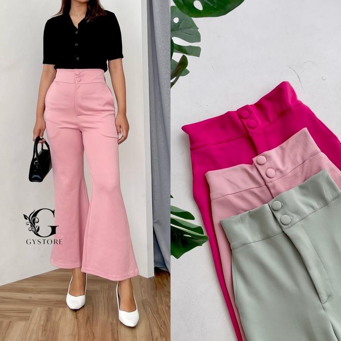 Thalita Button Pants Celana Kulot Cutbray Scuba 75 Kancing Karet Panjang Wanita Bawahan Casual