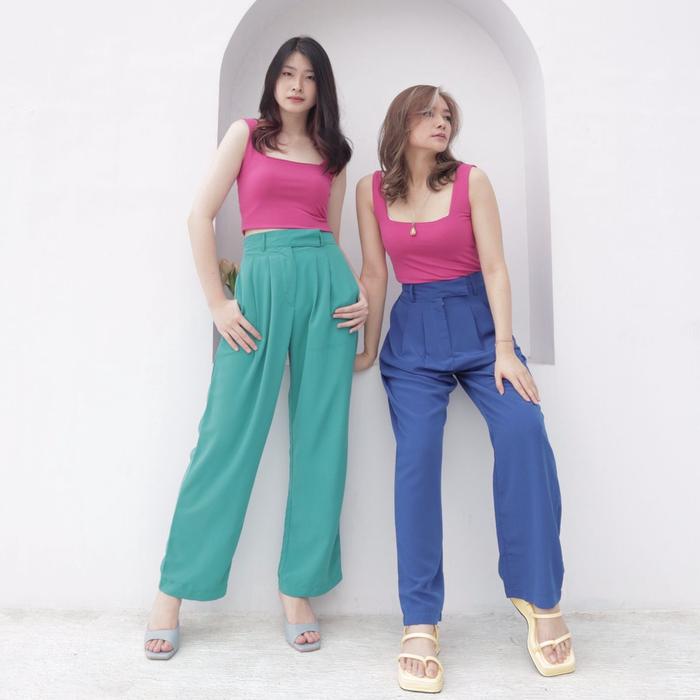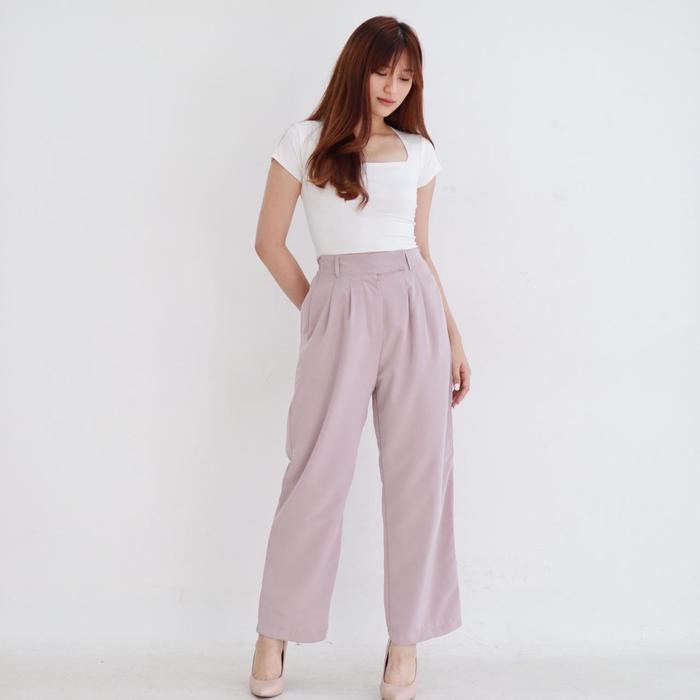 MSMO Gyaru Culotte Long Slim Highwaist Pants / Celana Kulot Wanita / Celana Panjang Basic