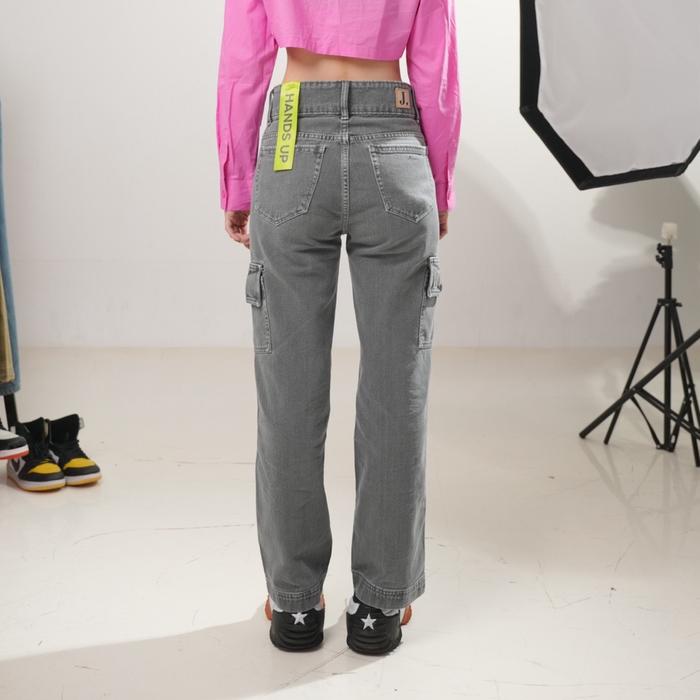 JINISO HANDS UP - 408 Cargo Loose Highwaist Celana Jeans Wanita Warna Light Grey