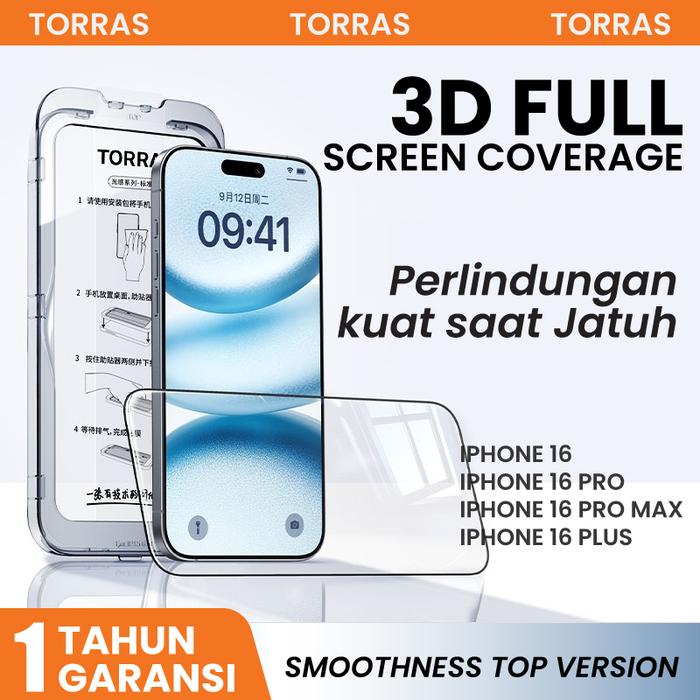 TORRAS Tempered Glass 3D Screen Protector untuk iPhone 16 Pro Max 16Pro 16 Plus