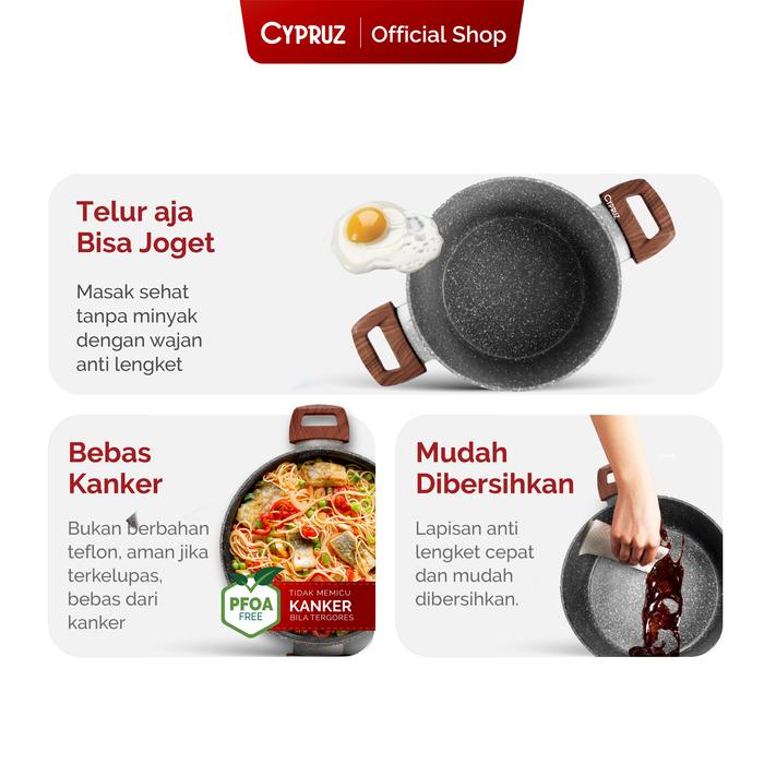 Cypruz Casserole Pan Panci Grey Marble Series Panci Anti Lengket Dengan Tutup Kitchenware