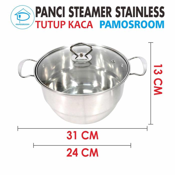 Calypso Panci Steamer Stainless 24cm + Tutup Kaca Free Kukusan 24 Cm