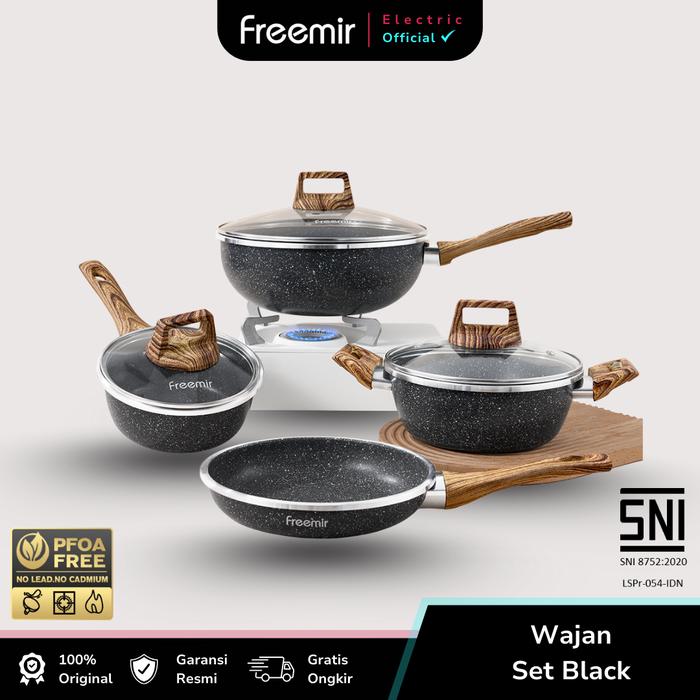 freemir Set 4 Pcs Wajan dan Panci 26/20/20/16 CM Granit Anti Lengket Multifungsi