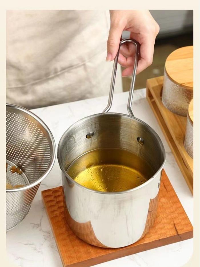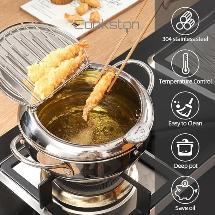 COOKSTON FREE TONG! 304 Stainless Steel Deep Frying Pot - Tempura Fryer Pan - 1.2L