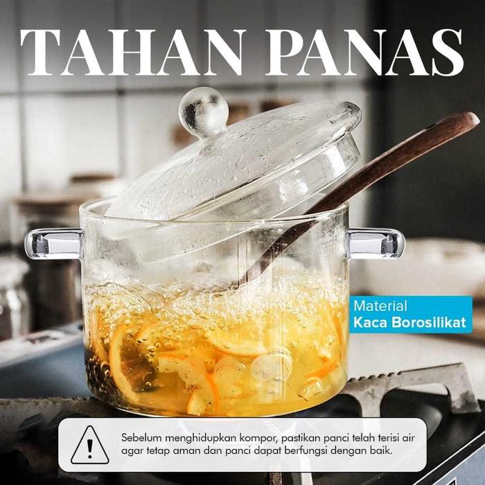 One Two Cups Pot Panci Masak Stewing Soup Pot Borosilicate Glass