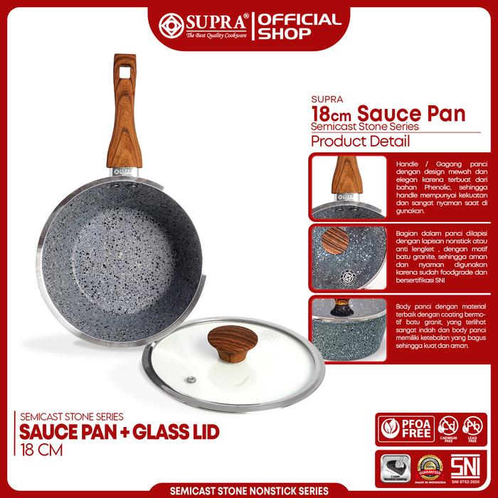 SUPRA Panci Alumunium Anti Lengket Sauce Pan 18 Cm Semicast Stone