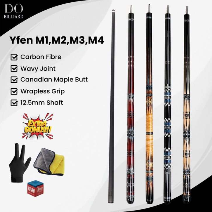 Stick Billiard YFEN M1 M2 M3 M4 Carbon Cue Wrapless Grip Low Deflection / Stick Yfen M1 M2 M3 M4 (Extra Extention)