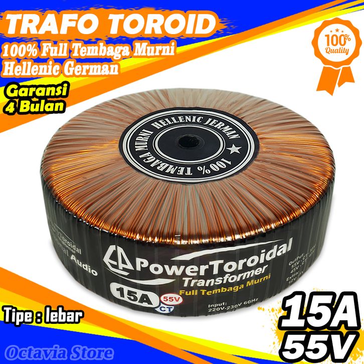 Trafo Toroid 15A CT 55V 45V (MURNI) Full Tembaga Murni Hellenic jerman Tipe LEBAR