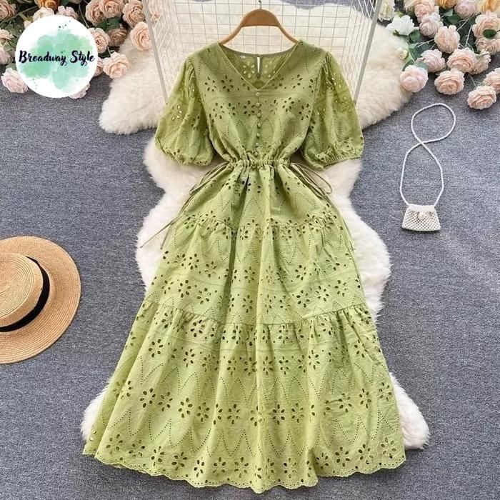 Maxi Bohemian Dress Embroidery Drawstring Katbol Baju Terusan Wanita