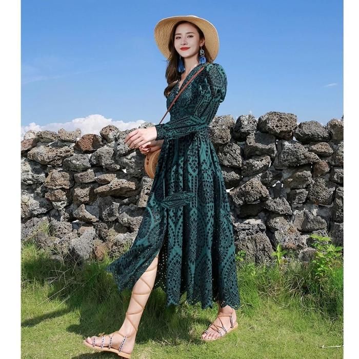 Dress Carminna Panjang Embroidered Cotton Katbol Wanita Pesta 61200#