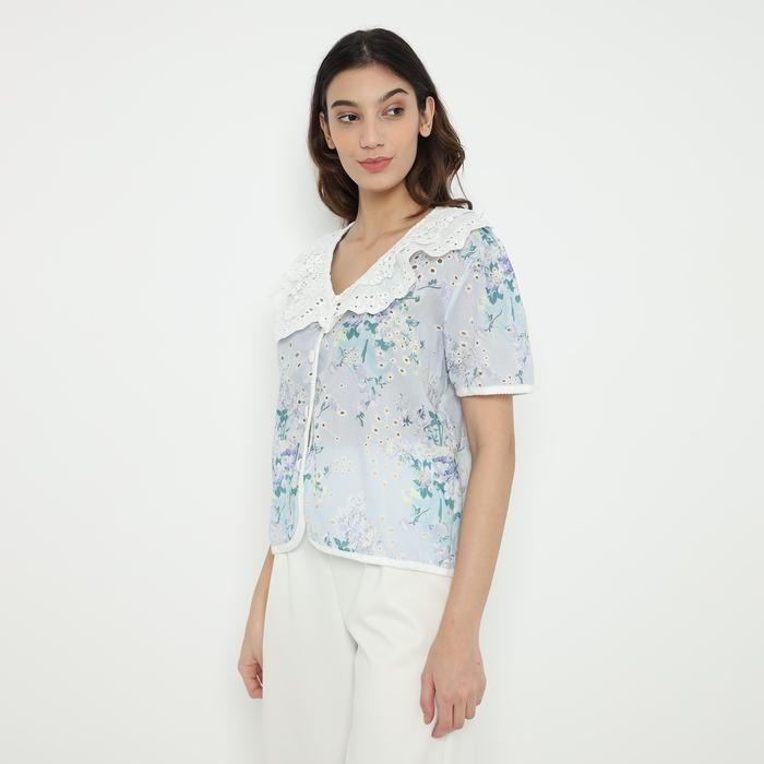 duapola Kemeja Katbol Bunga Kerah Renda 9779 - Ungu