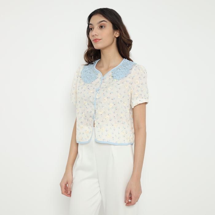 duapola Kemeja Katbol Bunga Kecil Renda 9799 - Biru