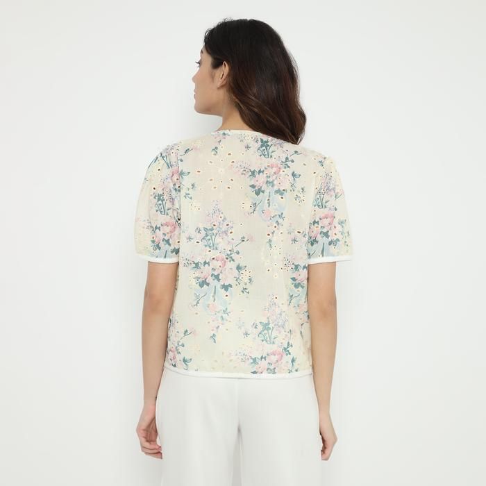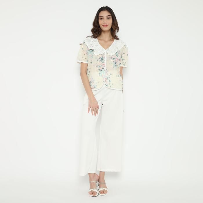 duapola Kemeja Katbol Bunga Kerah Renda 9779 - Cream