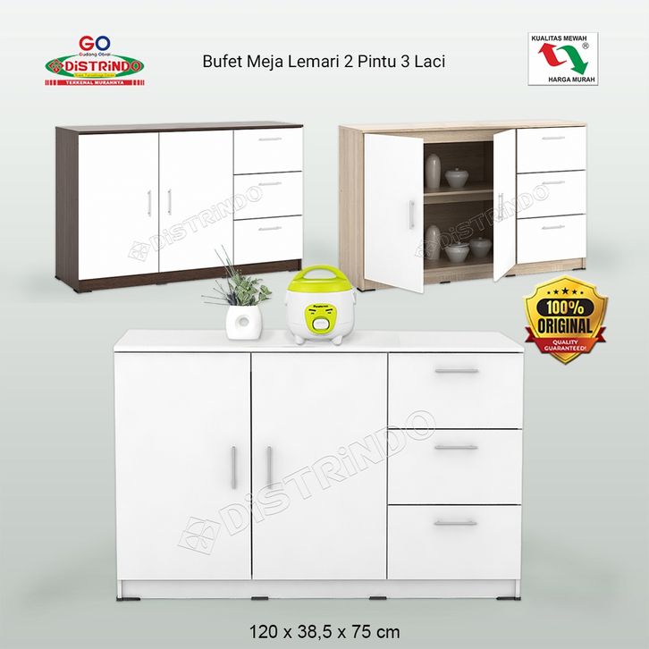 Distrindo - Bufet Minimalis Alba Baz SB 120 Meja TV Lemari 2 Pintu 3 Laci Serbaa