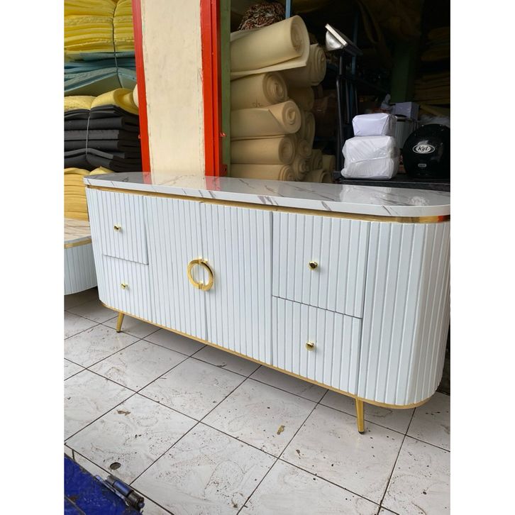 Meja HPL salur Laci Minimalis 160x40x75 Meja TV Estetik Modern Meja Konsol bufet TV