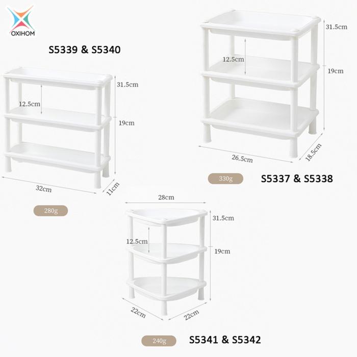 Oxihom Rak Dapur Rak Susun Plastik Rak Bumbu Rak Kamar Mandi Rak Plastik - S5337 Putih 2 Susun
