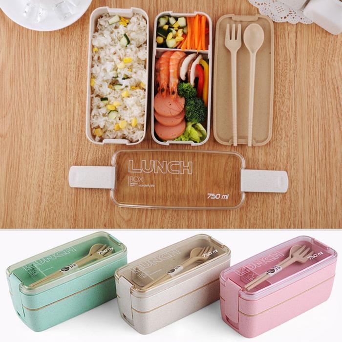 KOTAK MAKAN BENTO LUNCH BOX SUSUN 2 DAN SUSUN 3 - HIJAU 2 SUSUN