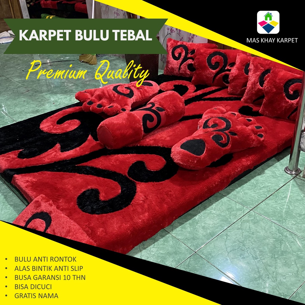 Kasur Karpet Matras Surpet Bulu Rasfur Busa Tebal Ukuran Jumbo 150x200x10 cm Fullset 9 Bantal