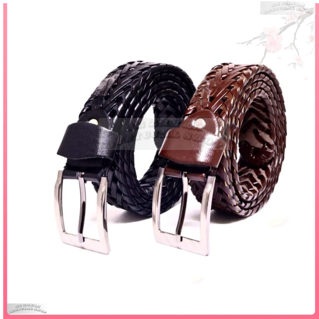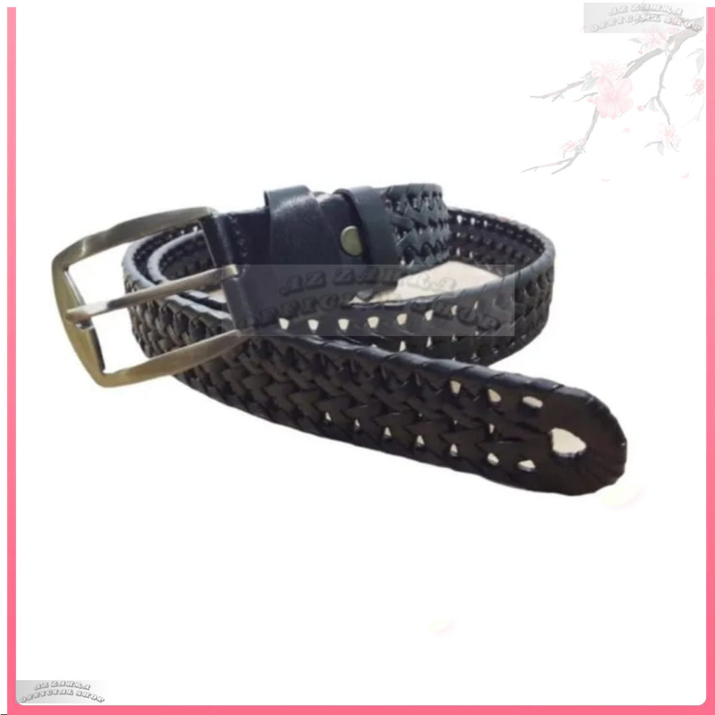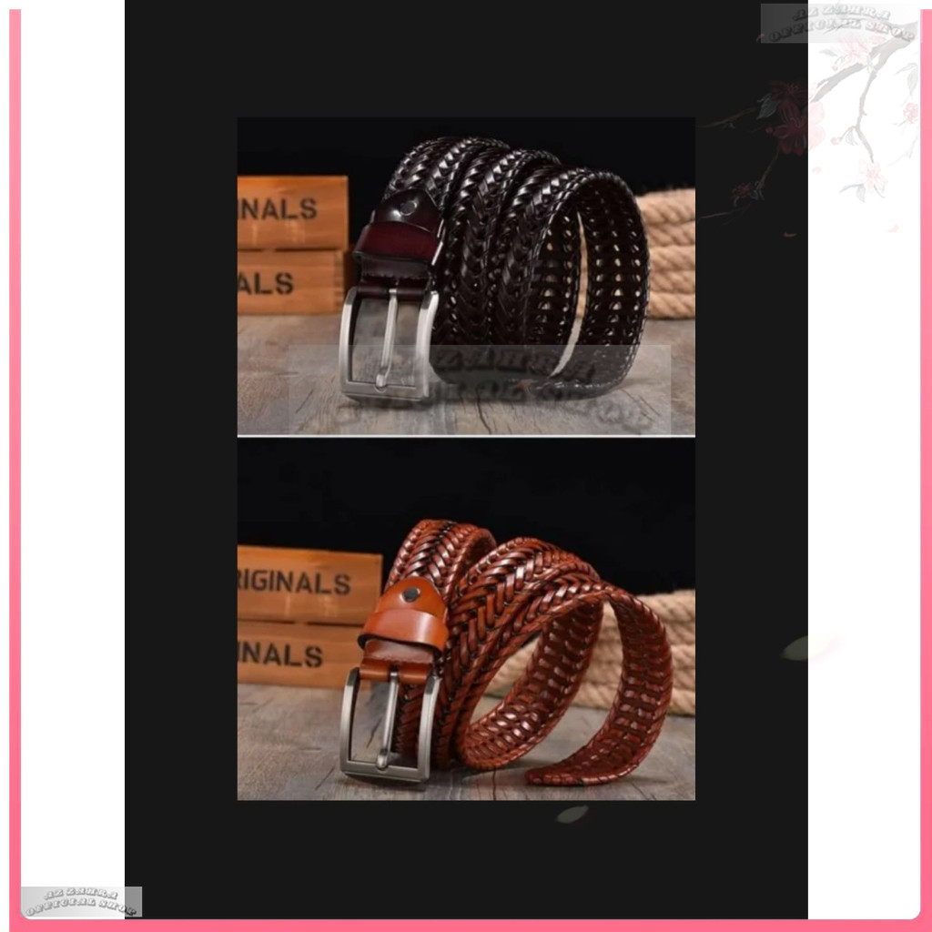 TERMURAH FREE BOX!!!ADA YANG BARU NIH IKAT PINGGANG PRIA ANYAM GESPER KEPANG SABUK KULIT ASLI