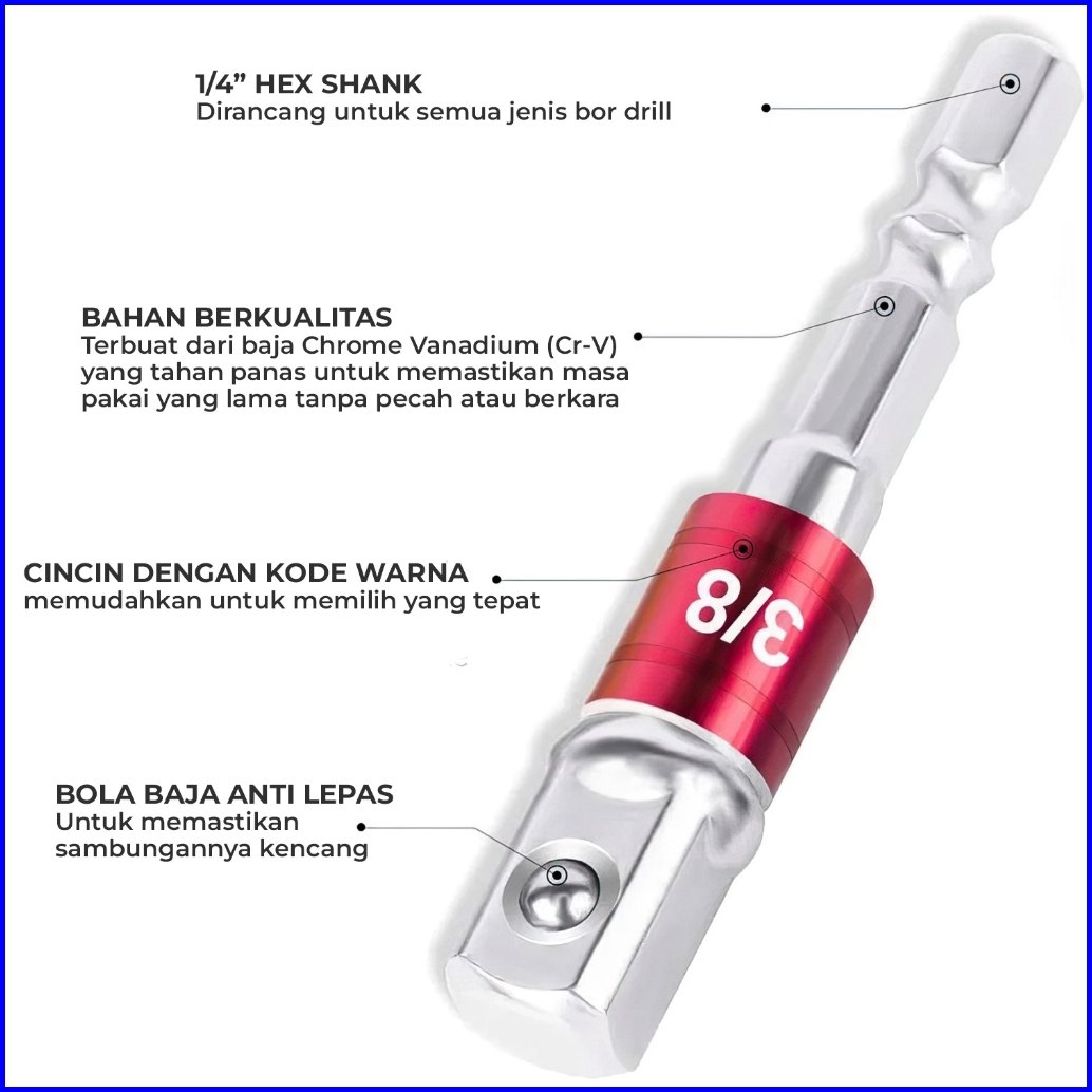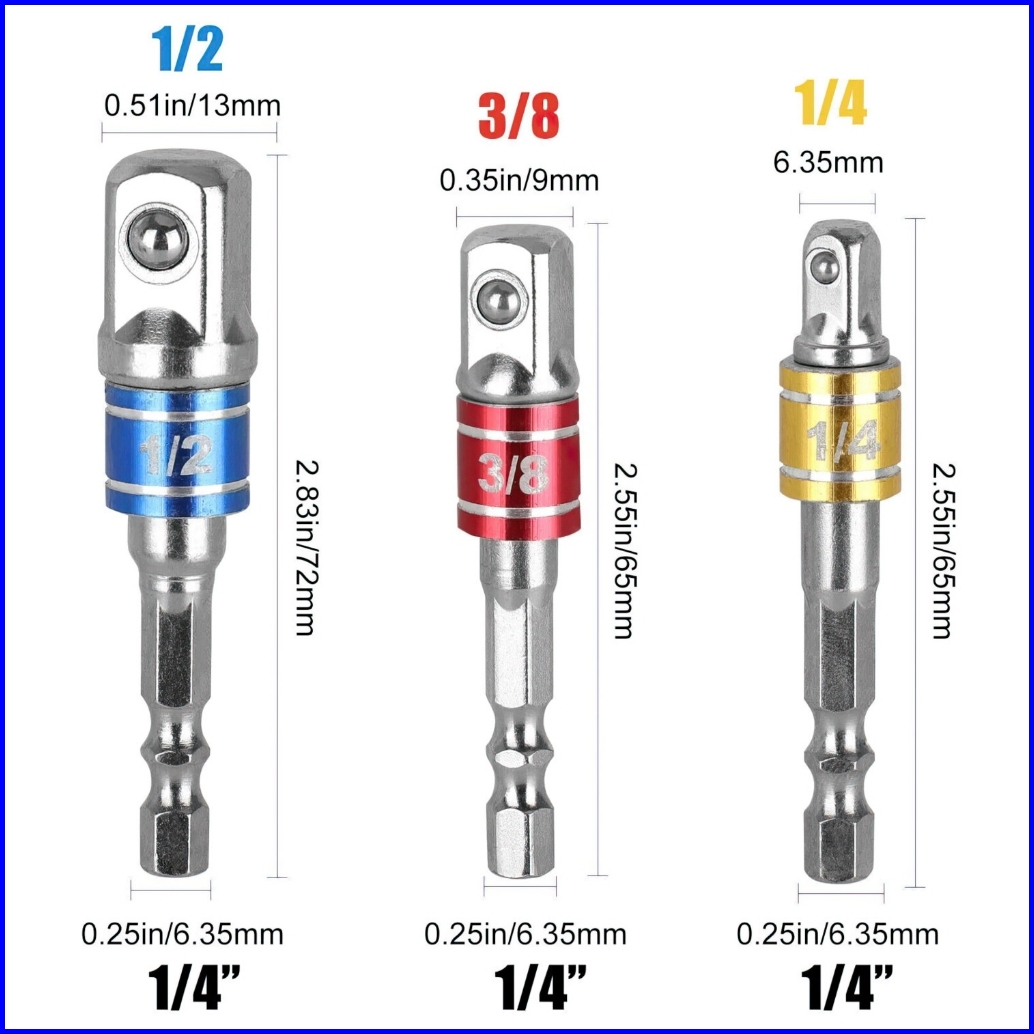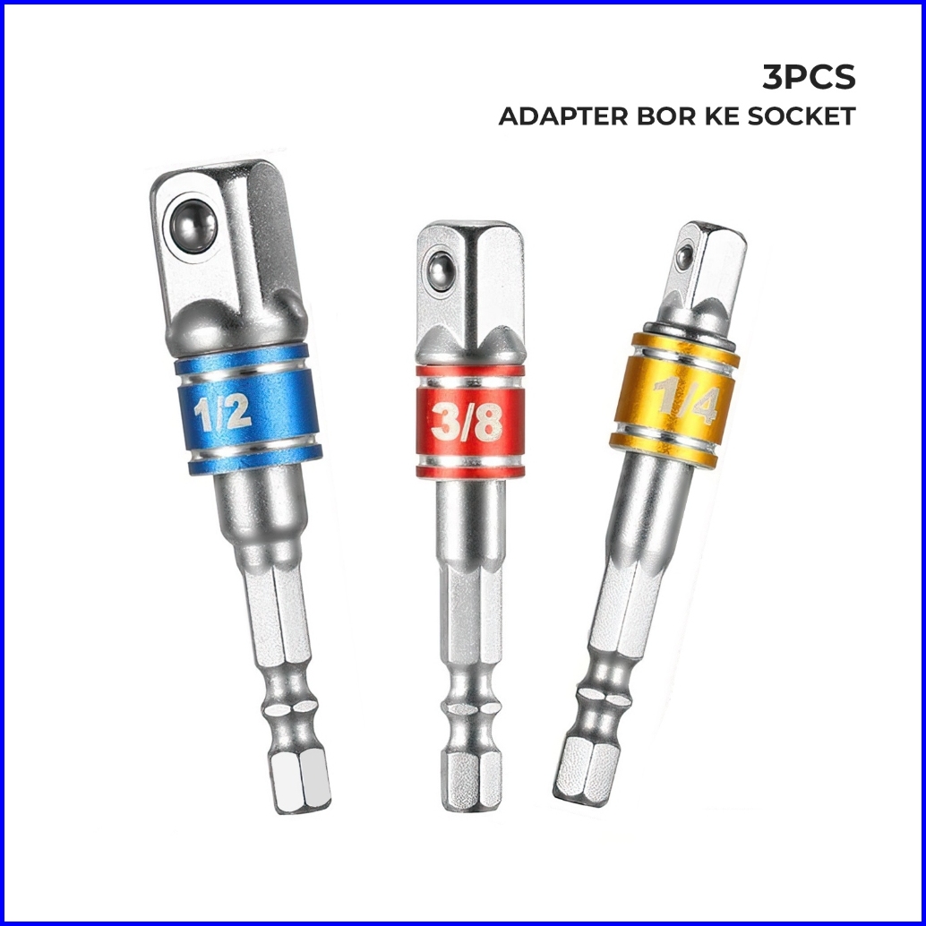 Allefix Adaptor Bor Ke Socket 1 4 3 8 1 2 Inch Set 3pcs- 6734