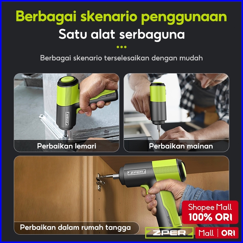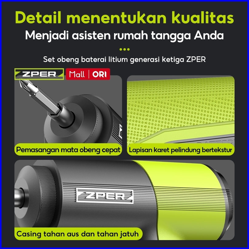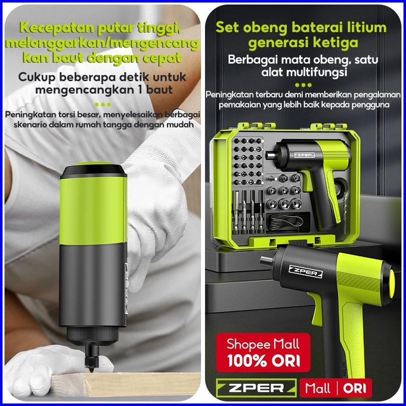 Zper Obeng Set Lengkap Toolkit Tool Box Mesin Bor Listrik Baterai Obeng Elektrik Set Komplit Mini Cordless Portable