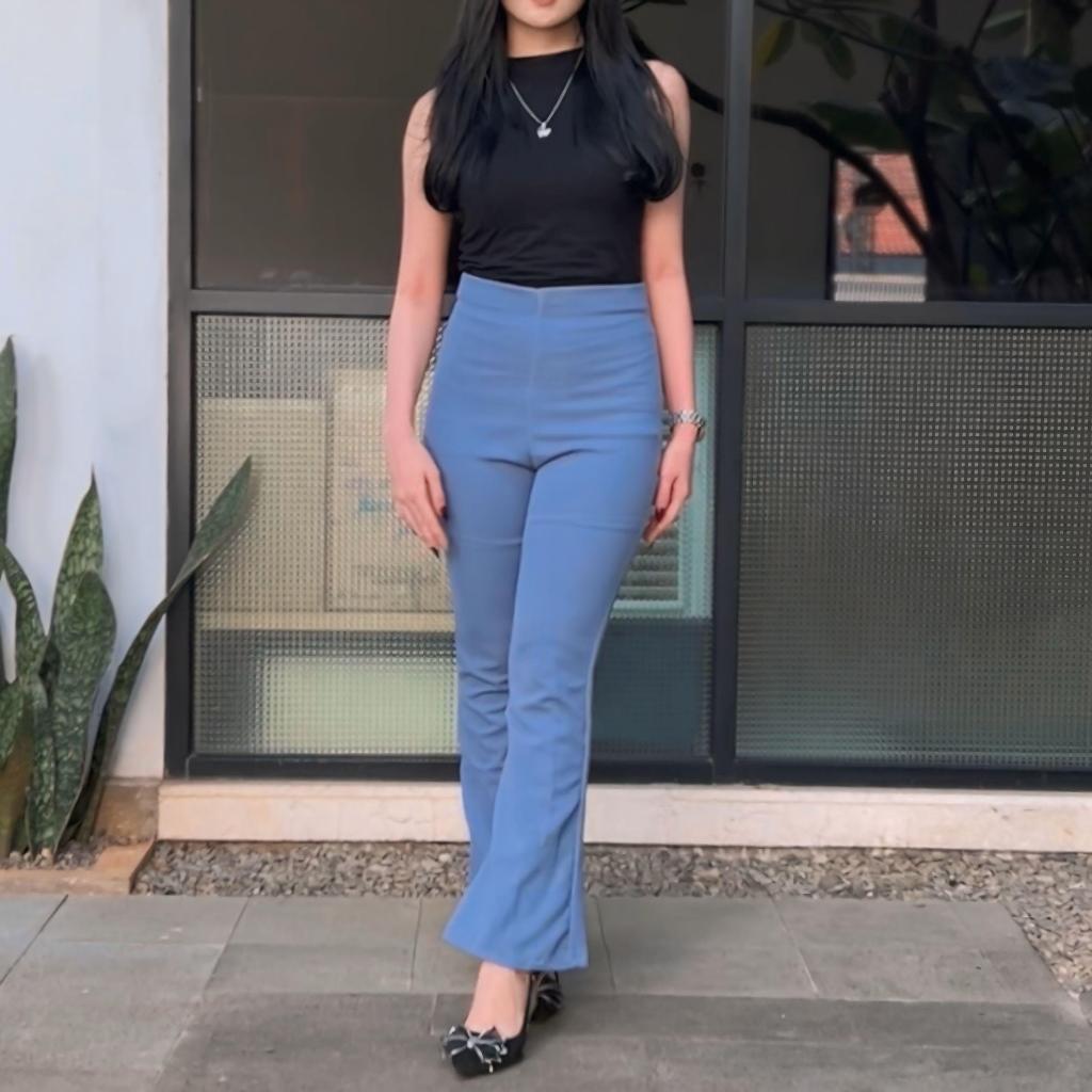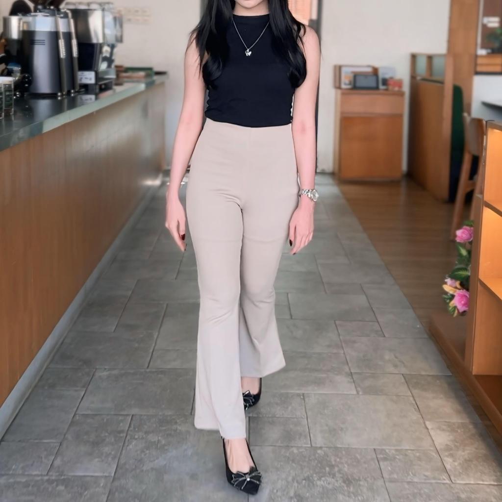 CORA PANTS - Loose Flare Cutbray Pants - Celana Panjang Knit Wanita - Long Cullote Pants Highwaist - Loose Flare Cutbray Pants Basic Rib Knit