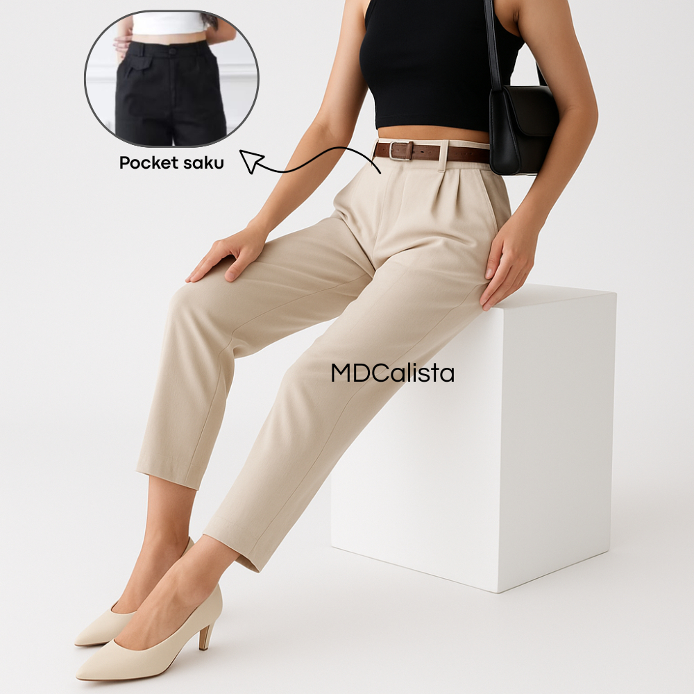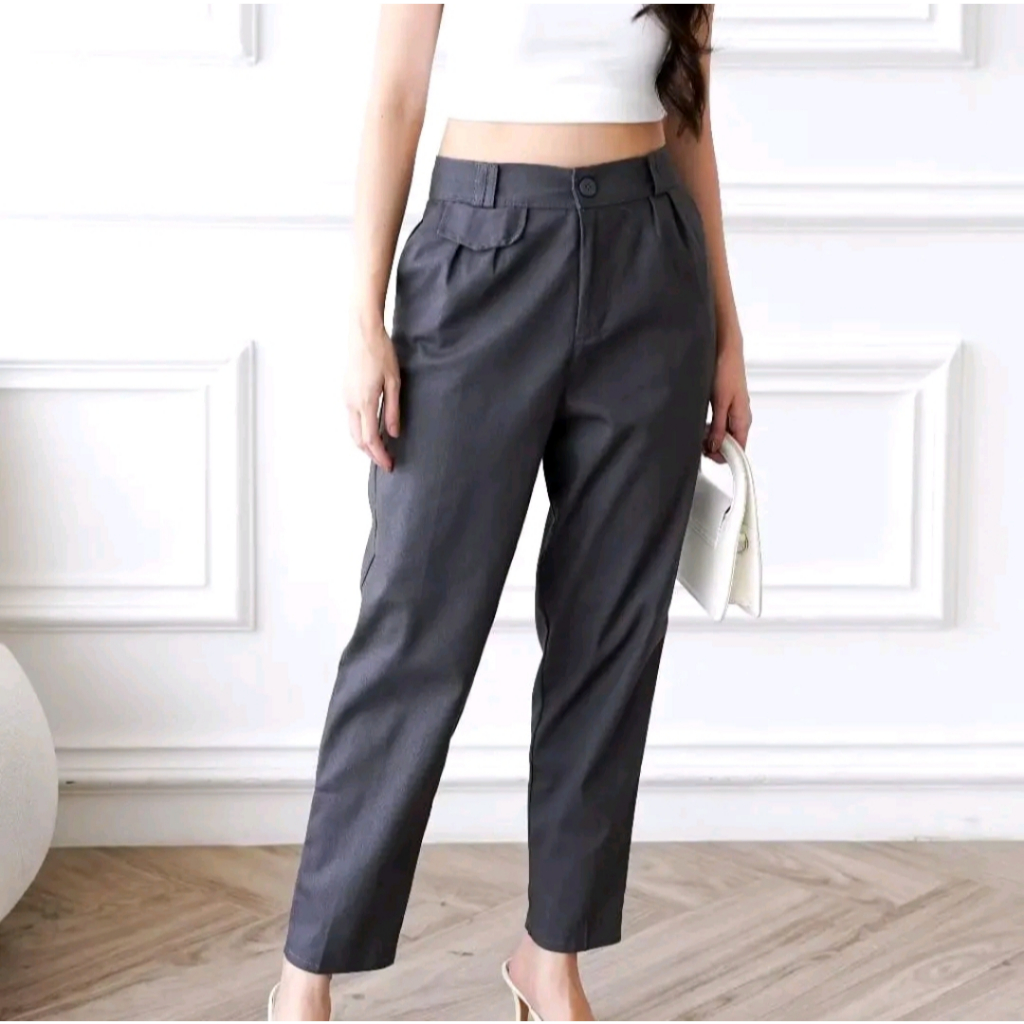 Ara Basic Pants Highwaist - Celana Kantor wanita - Loose Pants Casual Wanita Karet Kerja Formal