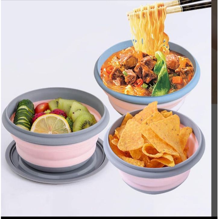 TERBARU Mangkok lipat kotak makan lunch box 3in1 foldable silicone / mangkuk camping ekonomis udefs