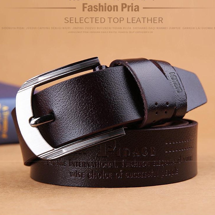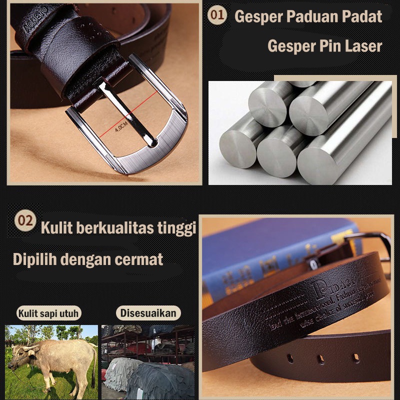 TERMURAH AOKEYO Ikat Pinggang Pria Kulit Sabuk Pria Kulit Sapi Asli Gesper Pria (Free Kotak+ Kartu Garansi)