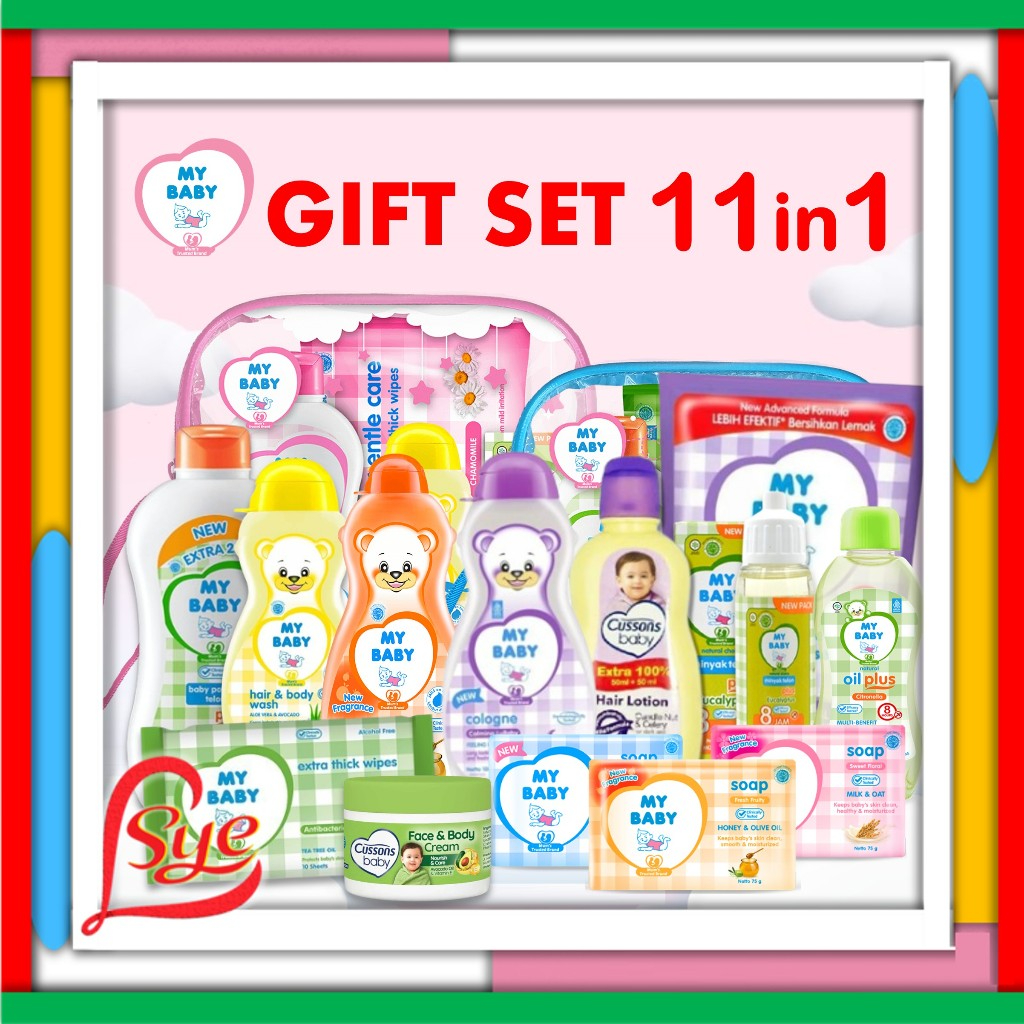 My Baby GIFT SET 11 in1 - My Baby Set PAKET - Wash - Powder Hair Lotion Cream - Baby Telon - SYE