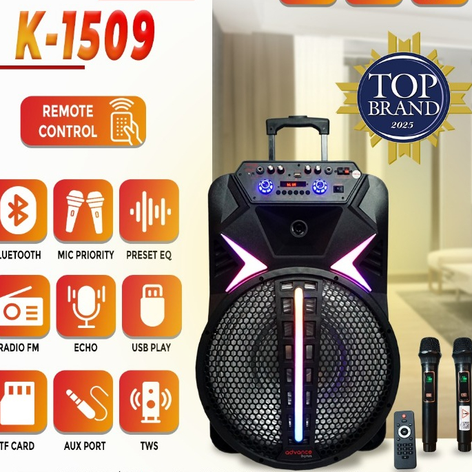 Advance K1509 Speaker Bluetooth Speaker15 inch Dual Microphone Wireless Garansi Resmi 1 Tahun