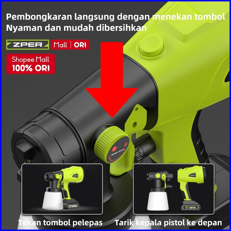 Zper Spraygun Cat Semprot Listrik 400w Sprayer Elektrik 1300ml Kompresor Alat Semprot Cat Zp002