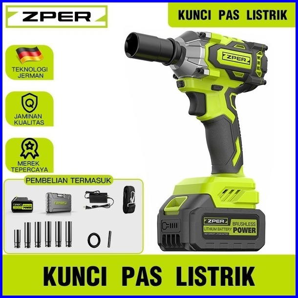 Zper Cordless Impact Wrench Brushless Impact Baterai Wrench Mobil Mesin Bor Untuk Baut 800n Zp013