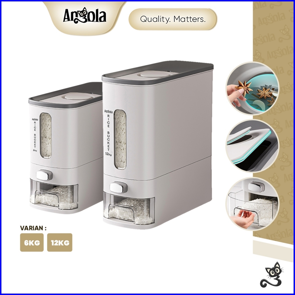 Angola Dispenser Beras Otomatis 6-12kg E13-e14 Tempat Penyimpanan Beras Food Grade