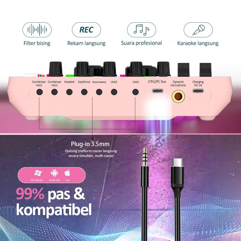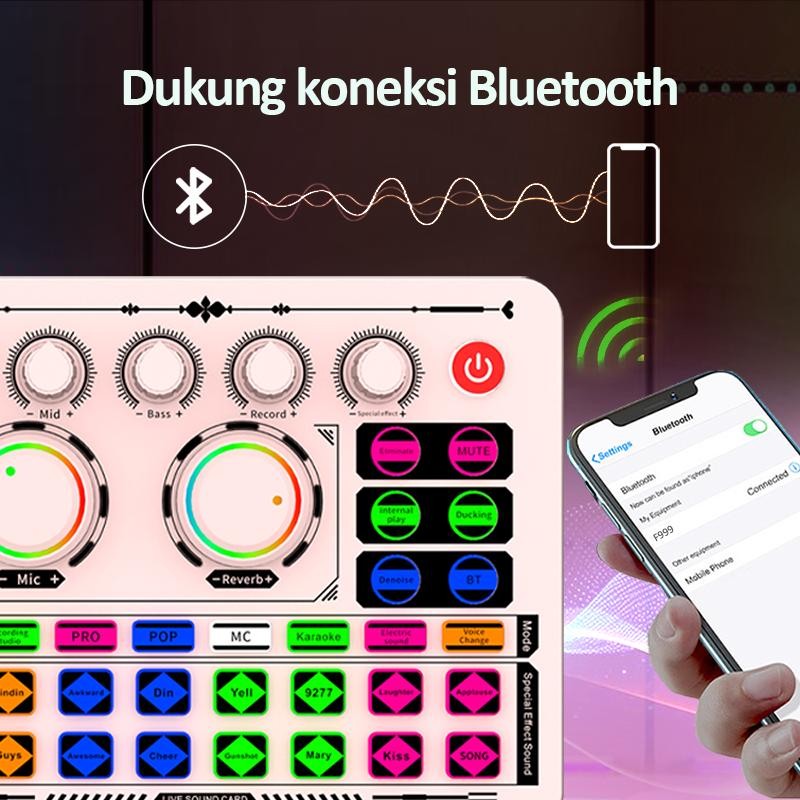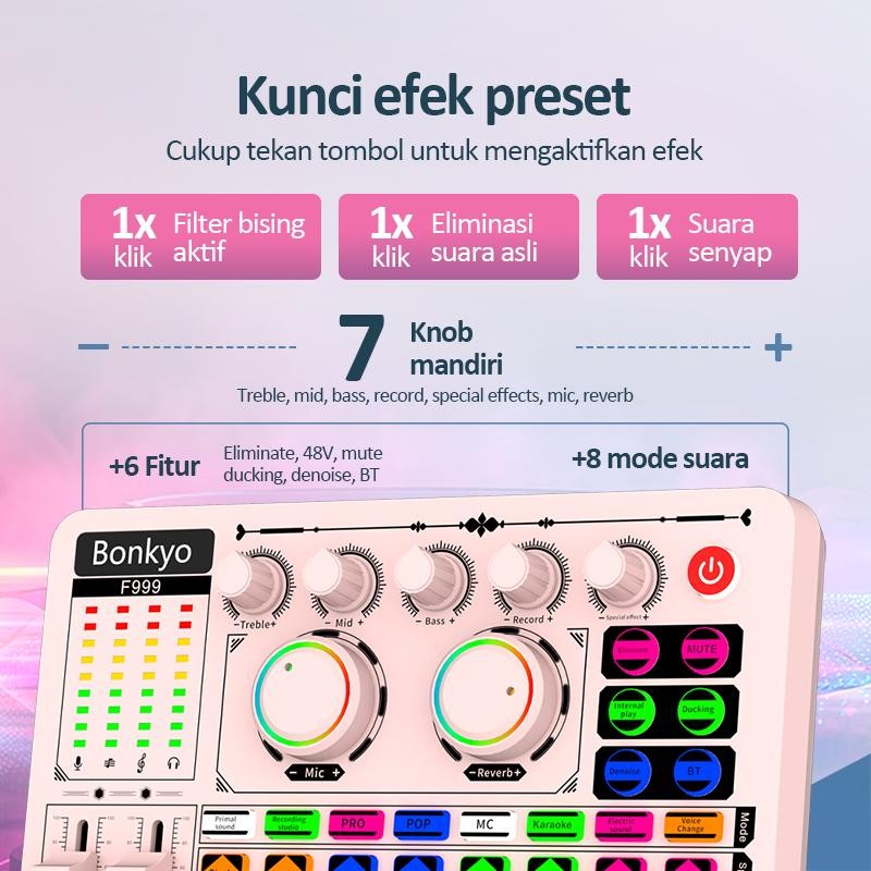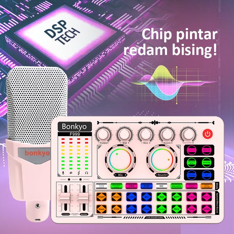 Bonkyo F999+ M996+headset sound card microphone set, special live broadcast equipment for recording and singing Audio Kartu Komputer Laptop - SOUNDCARD BLUETOOTH F999 AUDIO EXTERNAL