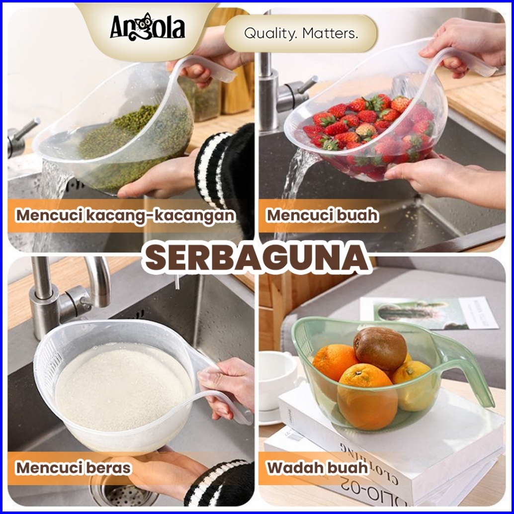 Angola Saringan Pencuci Beras Transparan L03 Wadah Cuci Beras Buah Sayur Ekstra Besar Food Grade Pp