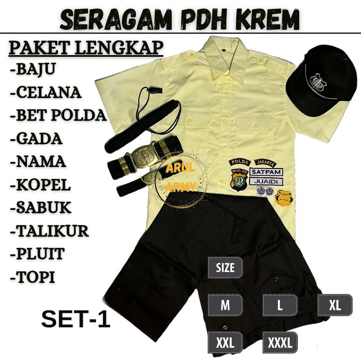Promo Seragam Satpam PAKET LENGKAP BAJU SERAGAM SATPAM SECURITY PDH SUS LENGAN PANJANG KREM UNISEX SETELAN PDL PDH SECW