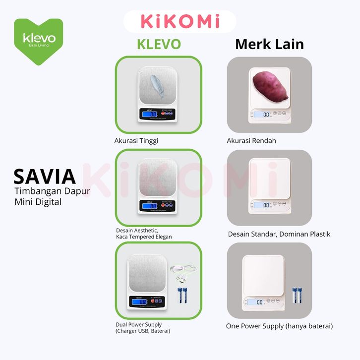 TERMURAH KLEVO SAVIA Timbangan Dapur Mini Digital 10 Kg Kitchen Scale LED Display Rechargeable Presisi Akurat -