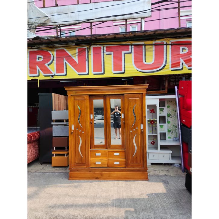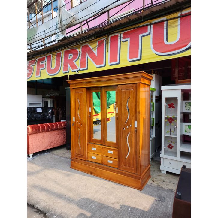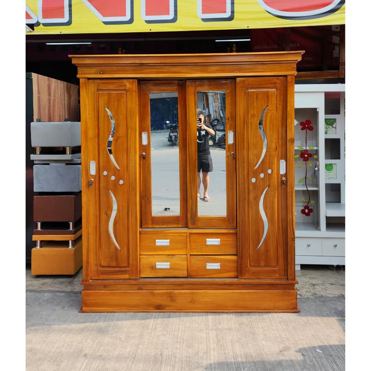 LEMARI PAKAIAN KAYU JATI / LEMARI KAYU JATI/ LEMARI 4 PINTU JATI