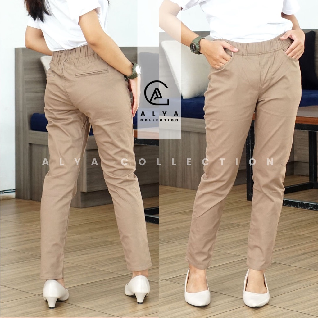 28-34 Celana panjang Wanita celana kantor celana formal celana chinos celana pinggang karet wanita